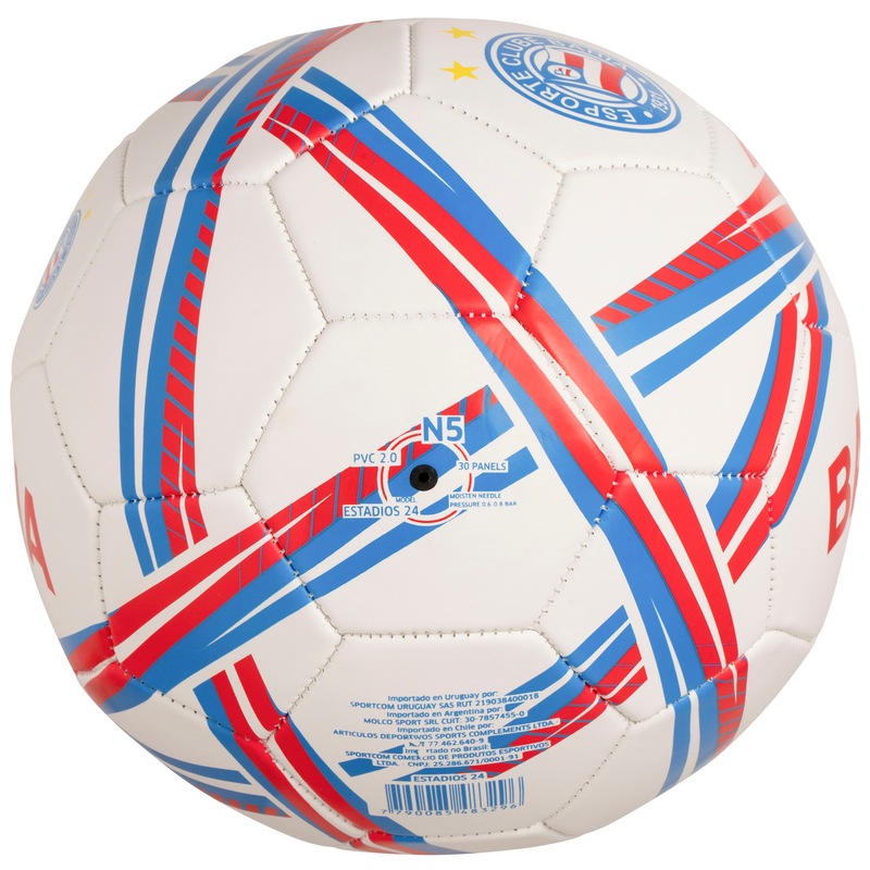 A Bola de Futebol Campo Bahia une qualidade e paixão pelo futebol. Produzida com material em PVC resistente e costura reforçada, garante excelente desempenho em gramados naturais e sintéticos. Sua superfície proporciona boa aderência e controle de bola, ideal tanto para partidas recreativas quanto treinos. O design nas cores do Bahia e o escudo oficial estampado tornam esta bola um item indispensável para os fãs do clube.