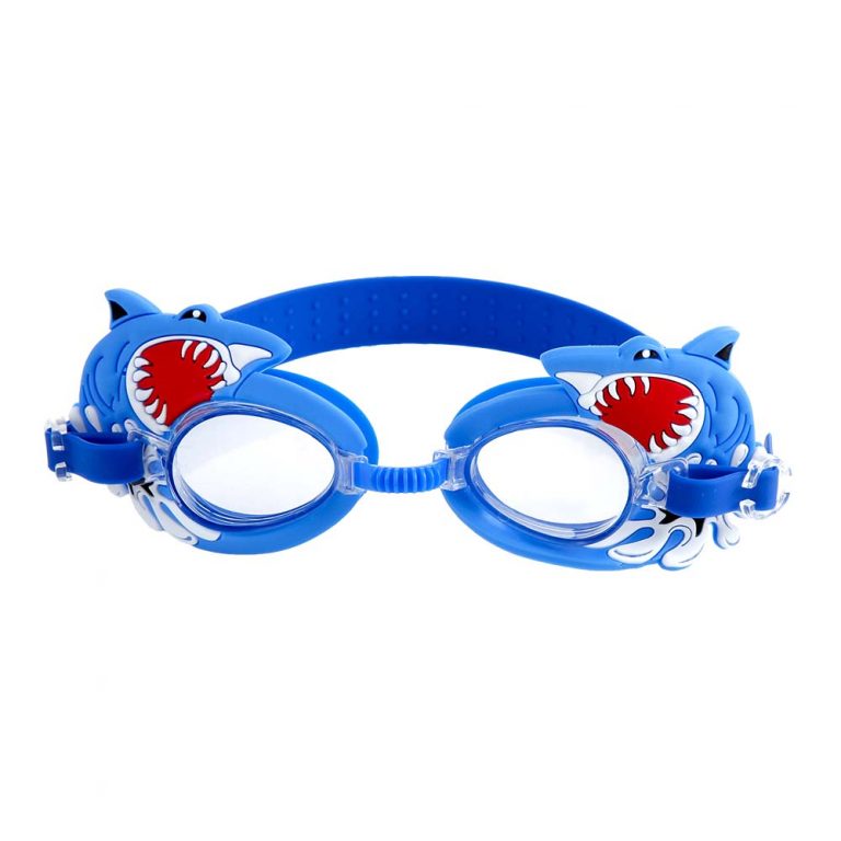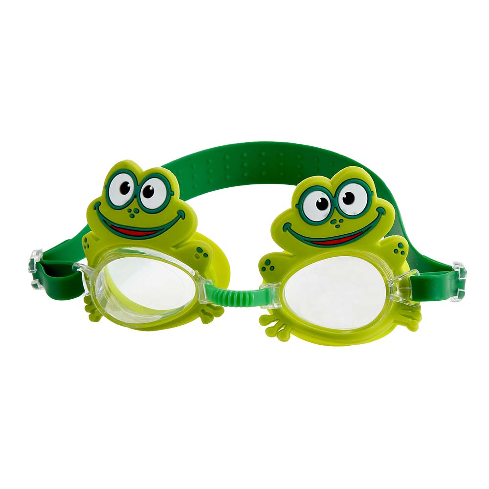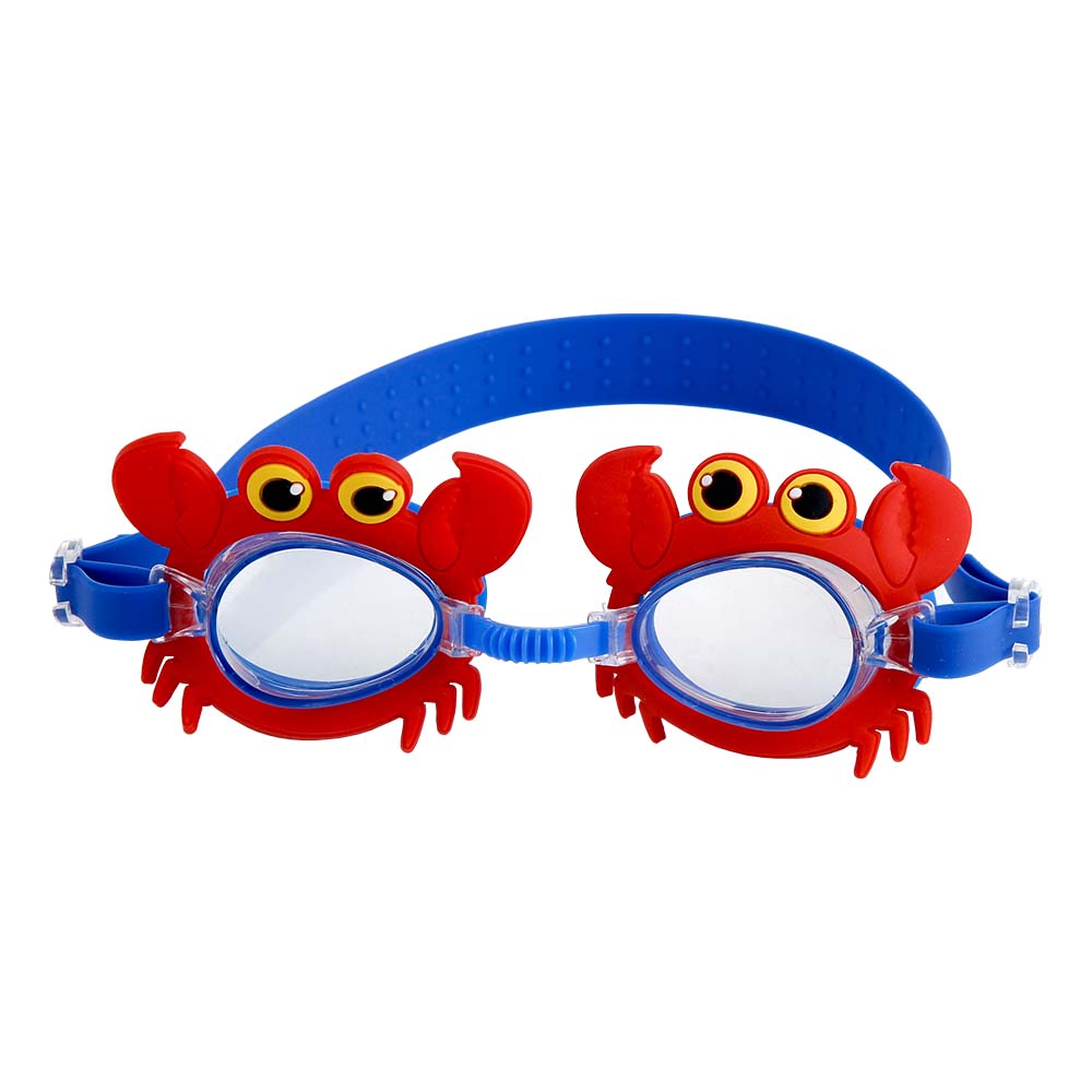 Óculos de Natação Infantil Personagem com designs divertidos (carangueijo, sereia, sapo e tubarão). Confortáveis, ajustáveis e perfeitos para incentivar as crianças na água.
